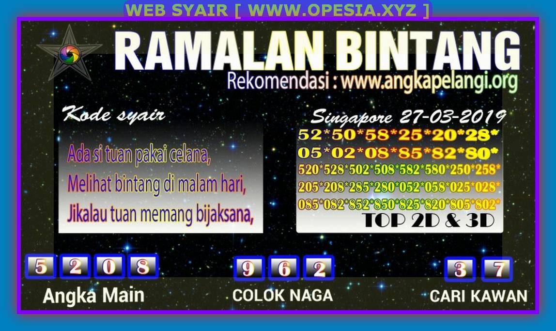 Kode Syair Toto sgp Rabu 27 Maret 2019 GOsyair SEDIA KODE SYAIR SGP